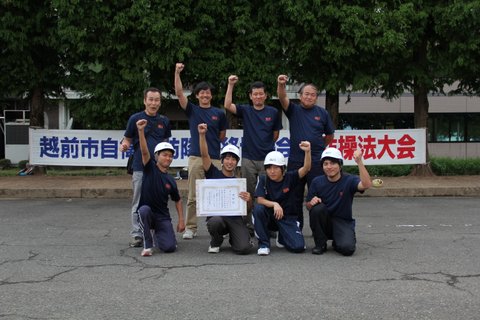 自衛消防隊員の防火・防災意識の高揚と消防技術の向上を目的に開催される操法大会。9月10日、武生中央公園体育館前にて17の企業・団体33チームが操法技術を競いました。当社からは今年入社の新入社員で構成する1チームが屋内消火栓操法の部に参加し、3位入賞と健闘しました。