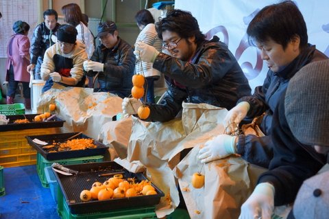 つるし柿体験ボランティアに参加、地域特産物の生産を支援