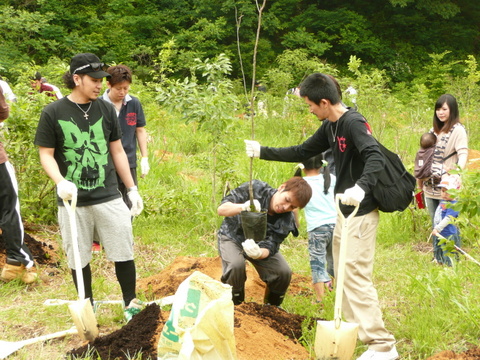 前回の植樹で当初予定していた2.4haの植樹場所すべてに植え終えたため、今回は発育状況の良くない第1回・第2回の植樹場所に再度植樹を行いました。
