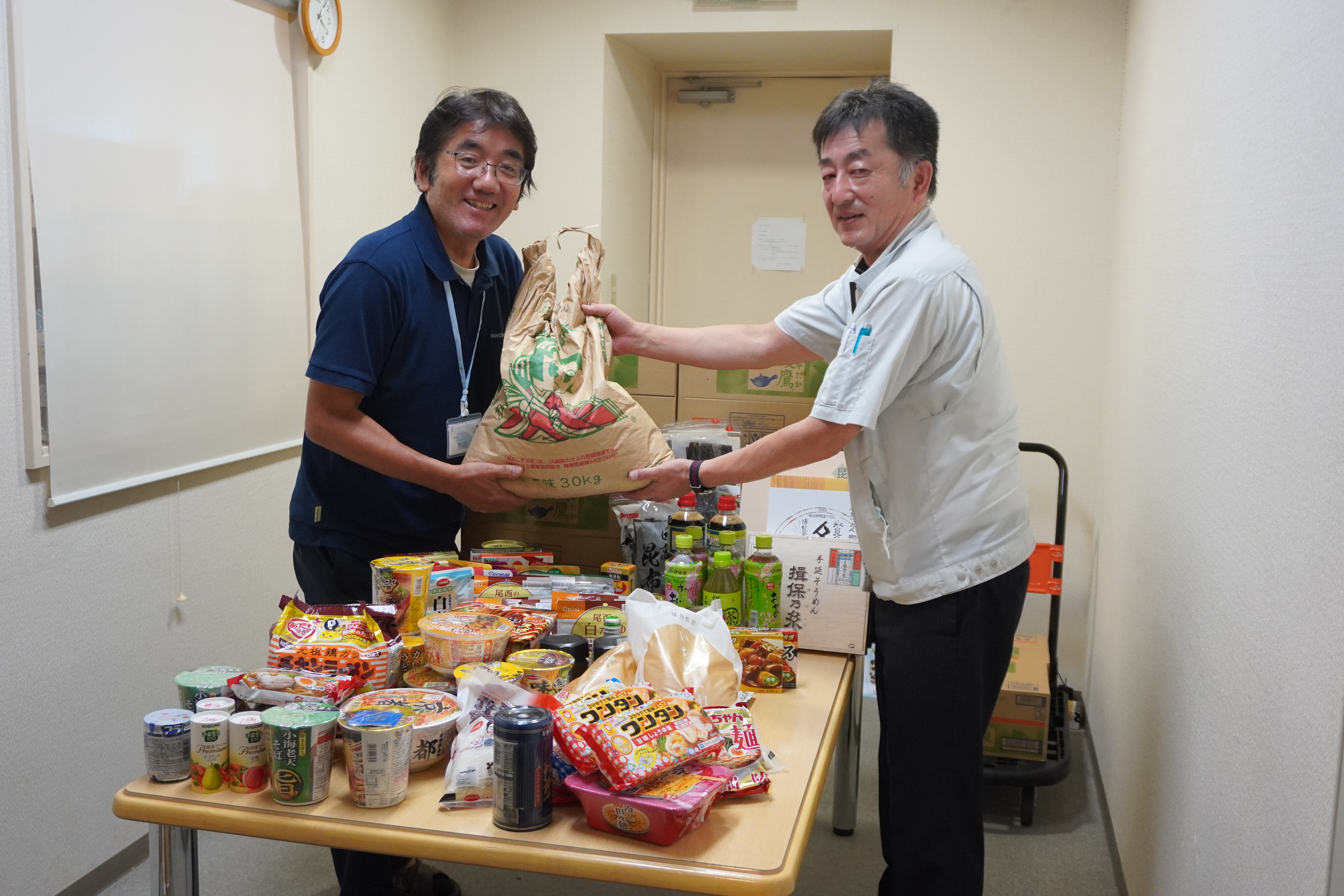 またグループ会社であるアイシン福井・若狭では、災害用に備蓄している非常食の一部も寄贈しました。