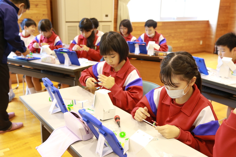 当社は自動車部品の製造会社として、地域の子どもたちに、ものづくりに触れ、ものづくりの楽しさを感じてもらうため、小学生を対象とした「モノづくり出前講座」を毎年実施しています。これは、子どもたちのものづくりへの想像力やチャレンジする意欲の育成、ものづくり企業の理解を深めることを目的に越前市が取り組んでいるモノづくりプロジェクト「モノプロ」に当社も参画しているものです。