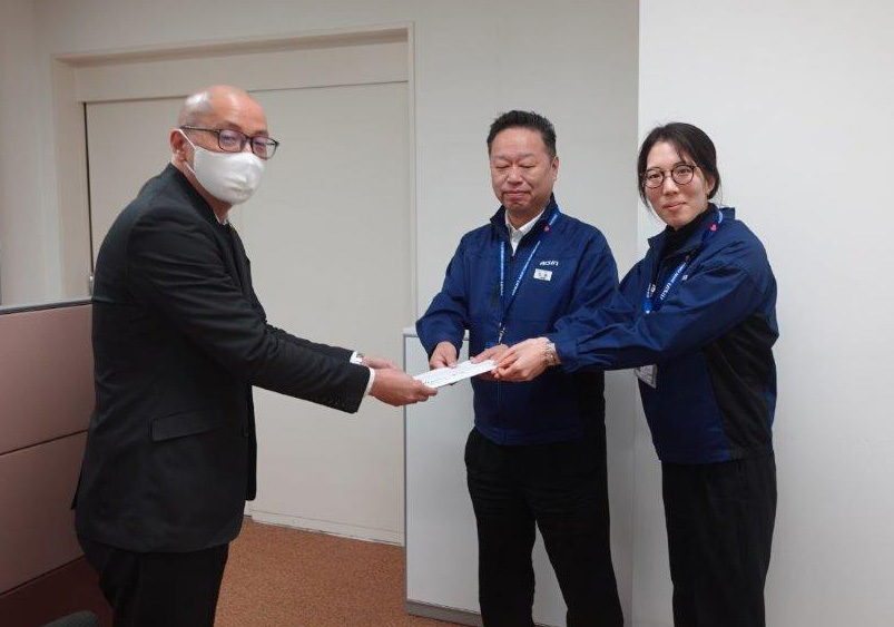 2月16日(金)、令和6年能登半島地震で被災された方々への支援を目的に、株式会社アイシン福井、株式会社アイシン福井・サービス、アイシン福井・若狭の3社にてそれぞれ職場単位や個人から集められた募金374,033円を災害義援金として寄付いたしました。