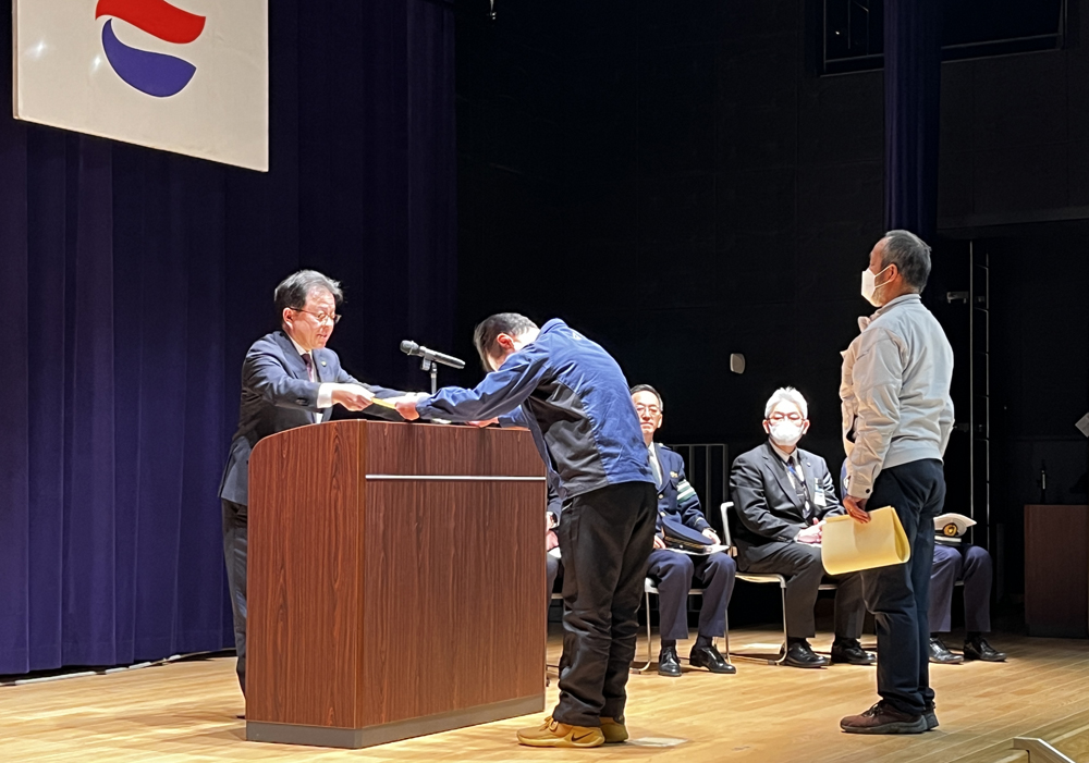 2月9日(金)、市生涯学習センターeホールで開催された越前市交通安全推進協議会総会にて当社が交通安全功労団体として表彰され、同協議会会長の山田賢一越前市長から表彰状が授与されました。