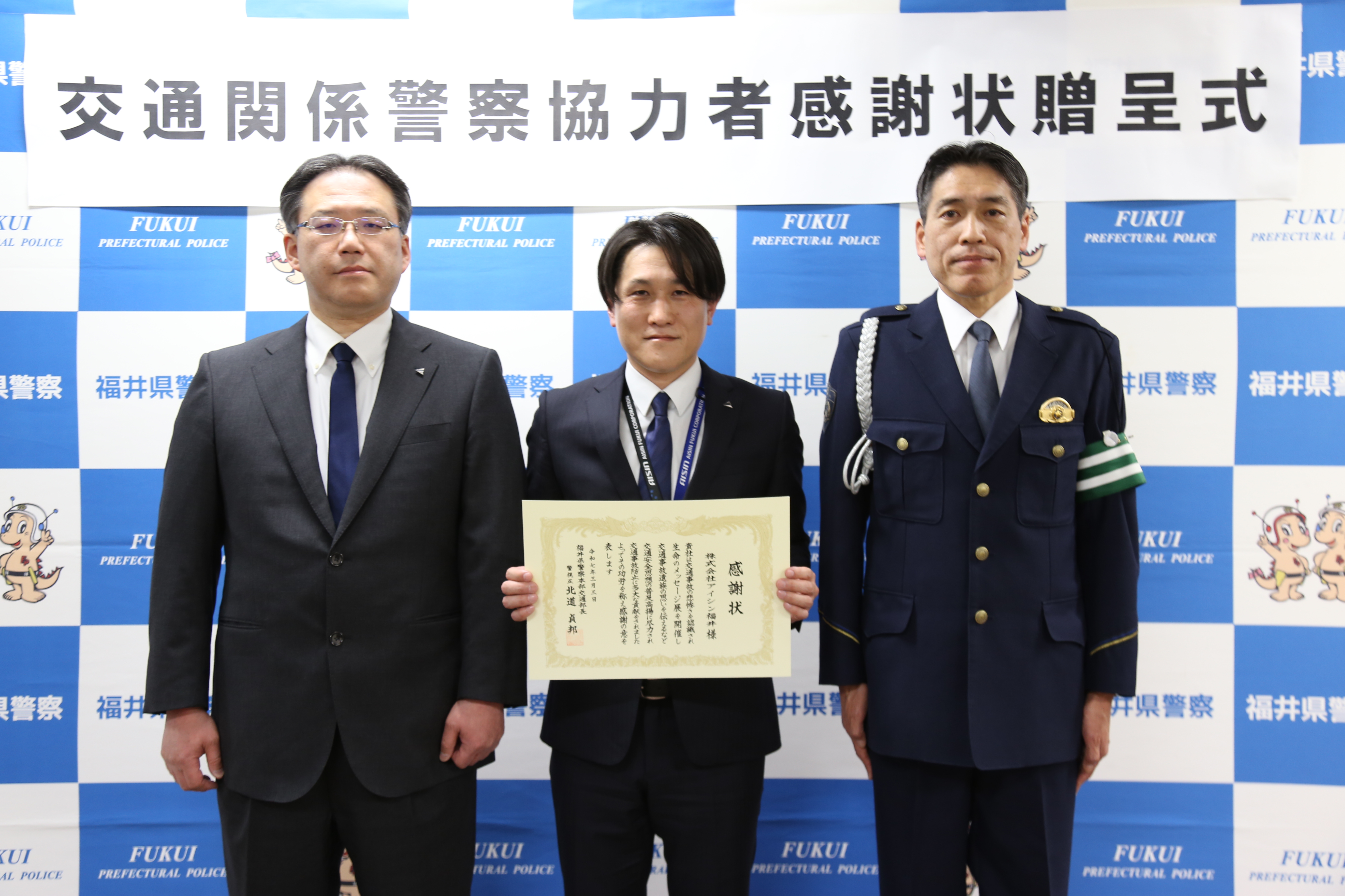この活動が交通安全思想の普及高揚に貢献したとして、2025年3月3日、当社は福井県警より感謝状を授与されました。