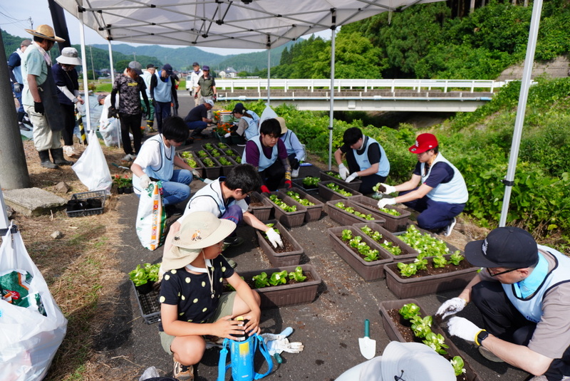 6月22日(日)、神山地区自治振興会が主催する神山ふるさと花壇の整備活動に、地域の仲間として当社から従業員とご家族をあわせて18名が参加しました。当日は、地域の方々と触れ合いながらプランターにマリーゴールドやサルビアなど色とりどりのお花を植えました。
