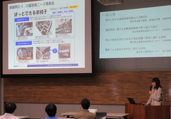11月1日、2日に福井市のAOSSA(アオッサ)にて行われた「第25回中部臨床工学会」内のパネルディスカッション、ならびに11月10日に福井市の福井県工業技術センターにて行われた「第25回医療福祉技術シンポジウム」内の一般講演において、福井県産業労働部 産業技術課 佐藤幸愛氏より、当社と地元介護施設とが連携し、介護現場の困り事解決に向けた車椅子の改善事例を紹介いただきました。