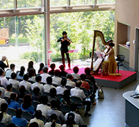 9月7日、ヴァイオリンとハープのデュオ“X”(イクサ)を招き、休憩時間を活用してミニコンサートを開催しました。