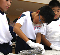 越前市が、青少年育成事業の一環として展開している「モノづくり出前講座」に当社も参加。10月28日の南中山小学校を皮切りに11月24日まで市内4校へ出向き、約300名の子供達に当社の作業工程のひとつであるタービンのブレード組み体験を通し、モノづくりへの姿勢を学んでもらいました。