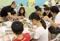 サンドーム福井で開催された“おもしろフェスタ inサンドーム福井2012”に出展しました。「発見!体験!ふくいのものづくり」をテーマにさまざまな展示・実演・体験イベントを行われ、当社は、子どもたちにものづくりの面白さを知ってもらおうとチョロQ作りの体験コーナーを設けたところ行列ができる盛況ぶりでした。
