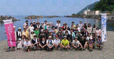 従業員から募ったボランティア63名が、海開き前の南越前町 甲楽城海水浴場周辺のゴミ拾いを実施。約1時間かけて軽トラック1台分のゴミを回収しました。