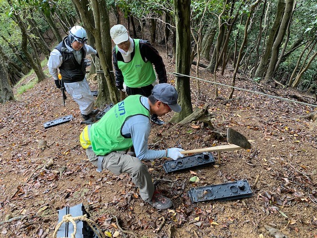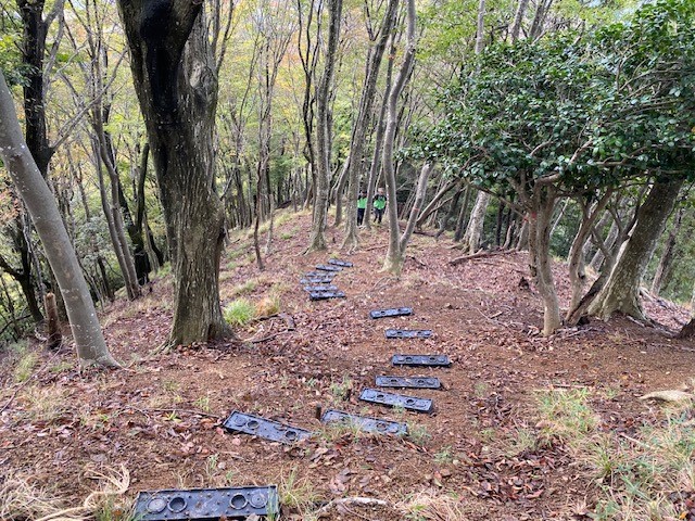 脇袋地区の住民の皆様の指導のもと、約50段分の新たな階段の設置と既存ルートの補修を行いました。