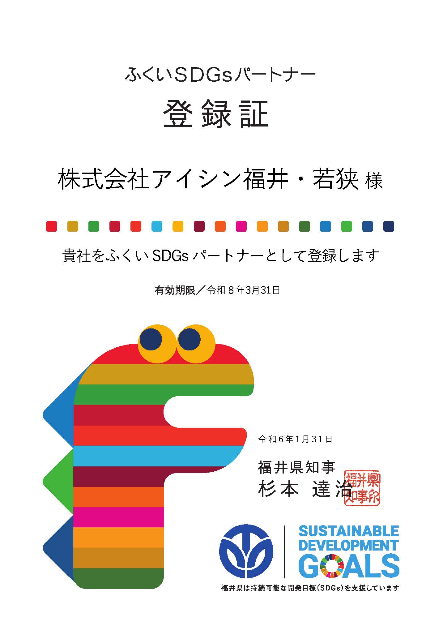 令和6年1月31日、当社は「ふくいSDGsパートナー」に登録いたしました!