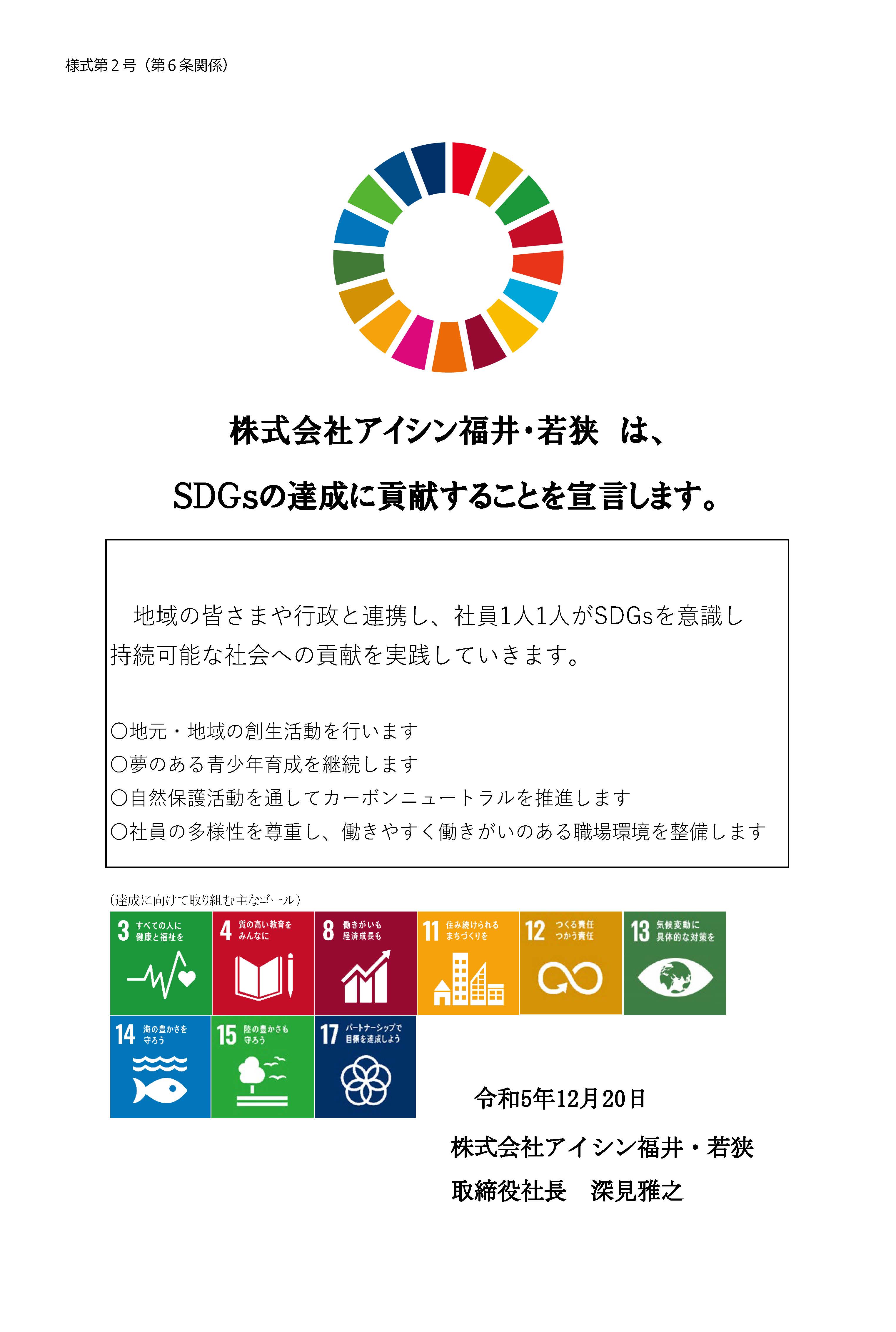 アイシン福井・若狭のSDGs宣言